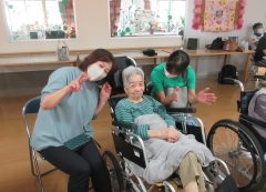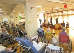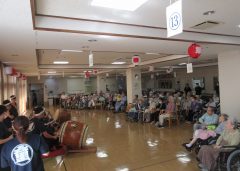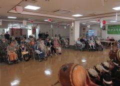 迫力ある太鼓の音色に入所者様も職員も元気をいただけました。